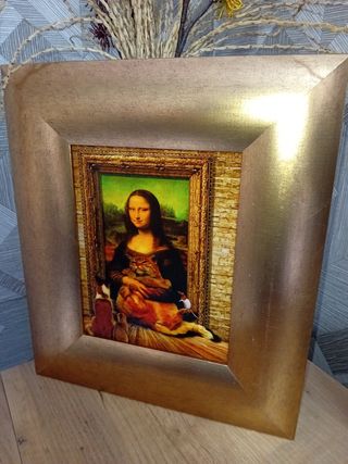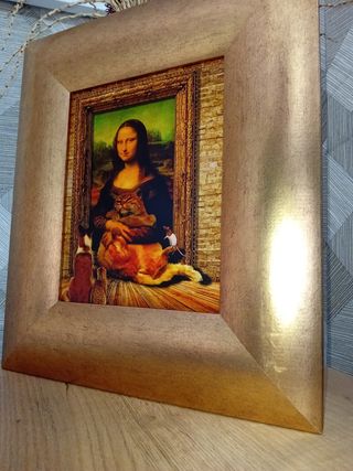 Bellissimo Quadro dorato con lamina Monalisa con gatti. Include lastra montata su vetro e cornice dorata. Ha una gruccia. Nel mio profilo ho più quadri dello stesso stile ideali per realizzare composizioni. La cornice inclusa misura 39 cm di altezza e 34 cm di larghezza. Vedi altre cose nel mio profilo. Ho oggetti decorativi come sedie restaurate, sedie enea, librerie, tavolini, specchi, shabby, chic, vintage, lampadari, appendiabiti, porte restaurate, maschere africane, molti quadri e altro ancora.