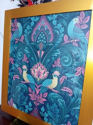 Dipinto singolo in oro di grandi dimensioni con stampa su carta di uccelli tropicali in stile art deco art nouveau. È in vetro ed è adatto per essere appeso. La cornice inclusa misura H 70,5 cm e larghezza 60,5 cm. Vedi altre cose nel mio profilo. Ho oggetti decorativi come sedie restaurate, sedie enea, librerie, tavolini, specchi, shabby, chic, vintage, lampadari, appendiabiti, porte restaurate, maschere africane, molti quadri e altro ancora.