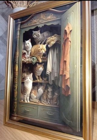 Quadro dorato con una foto di gattini in un armadio vintage. Include lastra montata su vetro e cornice dorata. Deve essere appoggiata e appesa. La cornice inclusa misura 32,5 cm e una larghezza di 23,5 cm. Vedi altre cose nel mio profilo. Ho oggetti decorativi come sedie restaurate, sedie enea, librerie, tavolini, specchi, shabby, chic, vintage, lampadari, appendiabiti, porte restaurate, maschere africane, molti quadri e altro ancora.