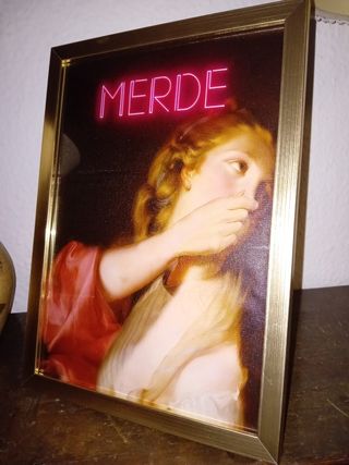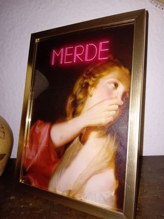 Quadro con tessuto in tela stampato in alta qualità del lavabo MERDE vintage da donna. Include tessuto in tela montato su vetro e cornice dorata. Misura 32 cm di altezza e 23 cm di larghezza. Può essere appeso e appoggiato su una base piatta. Guarda le cose più interessanti nel mio profilo, ho molti quadri, quadri, mensole, mensole, lampadari, vintage, shabby, rattan, decorazioni, sedie restaurate, tavolini, mobili da bar, portabottiglie, tavolo in vimini, collage, dipinto a crocifisso, mobili castigliani, botanica e altro ancora.