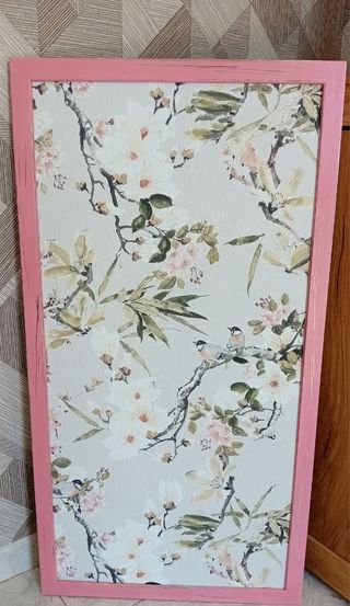 Bellissimo, unico ed esclusivo dipinto con cornice in legno rosa con base dorata e raffinata decapatura. Carta in stile shabby chic con stampa di uccelli in toni pastello. Misura 84,5 cm di altezza e 44,5 cm di larghezza. Vedi altre opere di oggetti e mobili restaurati manualmente nel mio profilo. Opere uniche ed esclusive. Specchi, lampadari, mensole, mobili per fumetti, mensole, mobili da bar, tanti quadri e altro ancora.