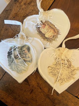 Cuori realizzati a mano leggermente imbottiti con immagini di Natale e impreziositi da nastrino e pizzo . Bellissimi da appendere all’albero di Natale oppure appesi a lampadari ganci, rami, maniglie , specchi finestre per rendere caloroso l’ambiente natalizio! Belli e originali anche da regalare a Natale! #natale #coeur #heart #babbonataledecorazione #fattoamanoinitalia #presentesdenatal #regalinonatalizio #christmas #christmaspresent #christmasgift #weinachten #weinachtsgeschenk #geshenk #weinachtengeschenk #nadal2025 #whitechristmas #whitechristmasdecorations #stelle #stellericamate #pezzounico #handmade #handmadewithlove #re