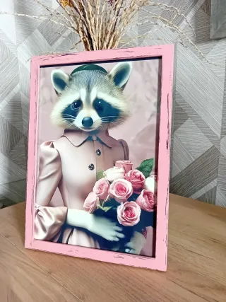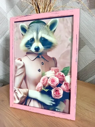 Ragazza procione Cuadro rosa che indossa un abito a fiori rosa