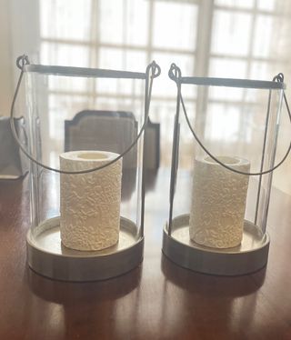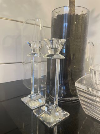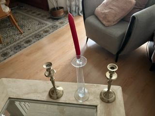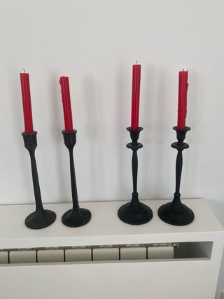 Candelieri e candele entrambi di Zara Home (una volta acquistati separatamente). I lampadari hanno un'altezza di 31 cm e un diametro di 18,5 cm. Uno dei lampadari danza un po'. Le candele sono state accese due volte. Il valore di tutto ciò che era nuovo era di 105,96€