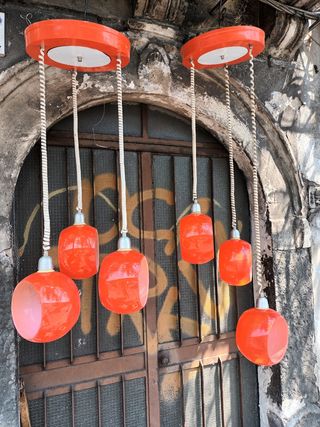 Bellissimi lampadari degli anni '50, perfetti per un arredamento retrò. Sono in ottime condizioni, considerando la loro età. - Tre lampadari inclusi. - Design elegante e senza tempo. - Struttura in metallo, vetro e plastica.