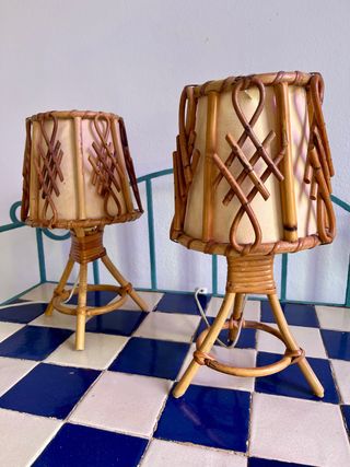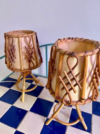 Coppia di lampade in vimini vintage
