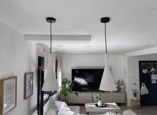 Lampada a sospensione dal design moderno. Il suo finitura bianca le conferisce un tocco elegante e minimalista.