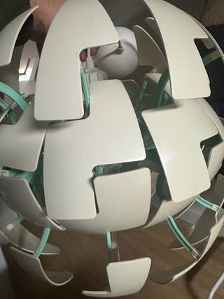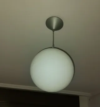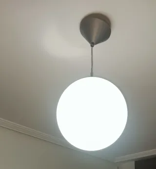 Lampada a sospensione con un design moderno ed elegante, ideale per qualsiasi ambiente. Finitura in grigio e bianco. Realizzata con materiali in metallo e vetro. Non è di Ikea.