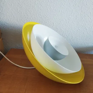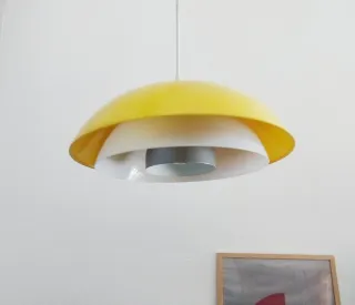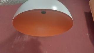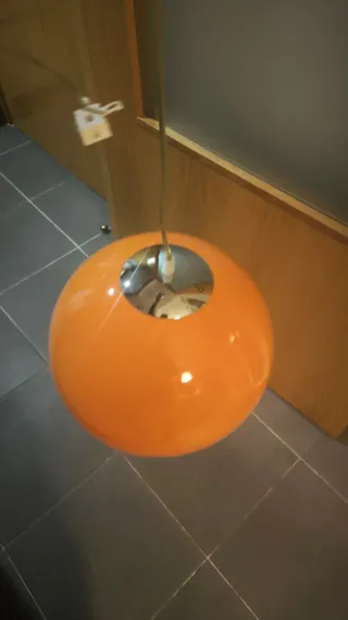 Lampada a sospensione da soffitto, diffusore in plastica color arancio, attacco grande.