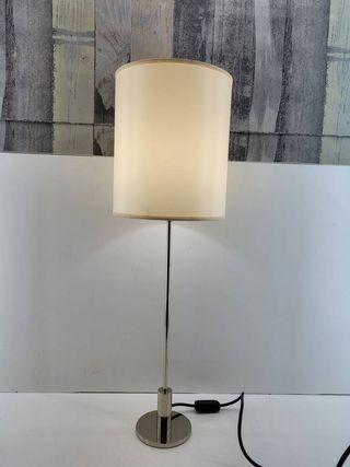 ✅ Ref. T49897 Lampada da tavolo in stile moderno con struttura fine e allungata in metallo e paralume cilindrico color crema. Perfetta per un tavolo da salotto o una cassettiera in camera da letto. Base piccola e rotonda. Buone condizioni. Misure: 22x70cm. Finanzia gli acquisti immediatamente. Visita il nostro sito Cardiffstore o il negozio a Torrellano (C/La Magrana); Chiama o invia un WhatsApp.