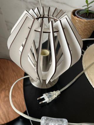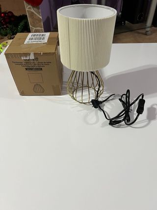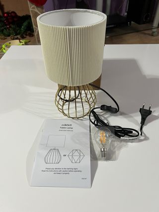 Lampada da tavolo dal design moderno, perfetta per qualsiasi angolo della tua casa. - Base a forma di coppa. - Paralume cilindrico. - Cavo di alimentazione incluso. - La base si è rotta il giorno in cui l'ho comprata. - Lo schermo è nuovo.