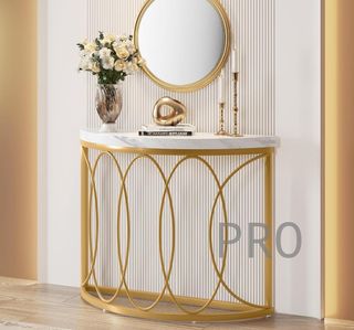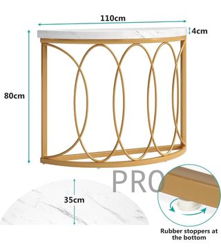 Tavolo consolle dorato Tribesigns, tavolino, tavolo da salotto, tavolo da corridoio con piano in marmo sintetico, struttura in metallo e design a mezzaluna, tavolino sottile per soggiorno