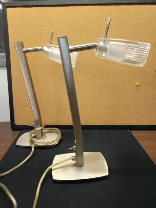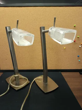 In vendita due lampade da tavolo alogene identiche. Sono perfette per illuminare il tuo spazio: comodini, ausiliari... - Design moderno ed elegante. - Struttura metallica con finitura cromata brillante di alta qualità. - Articolate e orientabili, perfette per la lettura o l'illuminazione ambientale. - Vetro protettivo e base stabile. - Funzionano perfettamente. Ben curate.