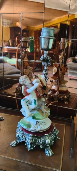 Antica lampada francese da lettura, ambiente o comodino. Forma di palmatoria in legno e puoi aggiungere la diffusore che preferisci tra quelli chiamati a pinza. Si spedisce senza lampadina e senza diffusore. Ha il suo interruttore di accensione e spegnimento. Misure: altezza 15 cm e base di 11 cm. SE TI INTERESSA una delle due schermate, sarebbero 5€ in più. FACCIAMO SPEDIZIONI. Limoges, Capeans, Vargas Segovia Wedgwood, Káiser, Rosenthal, WMF, Murano, Nadal, Nao, Lladró, Rakoto, Pedro Borja cubismo, lampade smaltate, Fase, faretti, grandi valigie in pelle antiche, lanterne.