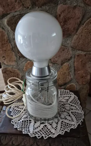 Lampada da tavolo vintage Ikea, un pezzo unico per la tua scrivania o comodino. - Design moderno e funzionale. - Struttura in metallo e plastica resistente. - Colore blu trasparente che aggiunge un tocco di stile.