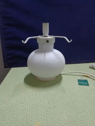 Lampada da tavolo dal design elegante, ispirata allo stile Fontana Arte disegnata da Max Ingrand. La sua forma sferica e il colore bianco la rendono un pezzo d'arredo versatile. Prodotto da Interni Luce Milano presenta il sigillo di garanzia originale. Articolo usato solo a scopo espositivo. No paralume - Base in metallo. - Diffusore in vetro satinato.