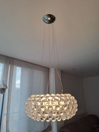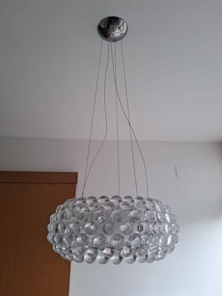 Bellissima lampada, è il modello originale Foscarini. modello mezzo pendente a sfera trasparente. Ben mantenuto. Regaliamo pezzi di ricambio (anelli, sfere e lampadine). In vendita per un cambio di decorazione. Ne vale la pena