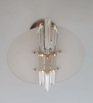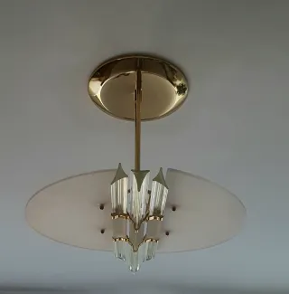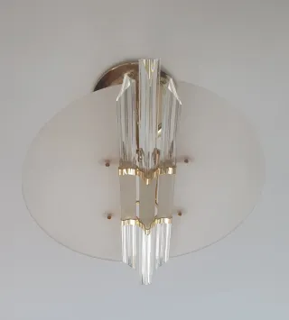 OPPORTUNITÀ per ristrutturazione. Eleganti lampade da soffitto Foscarini, perfette per soggiorno o sala da pranzo. Il loro design combina finiture dorate con dettagli in cristallo trasparente. Base circolare in metallo dorato. Tulipano in cristallo sfaccettato. Design moderno e sofisticato. 100€ la piccola 150€ la grande
