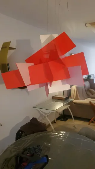 Bellissima lampada da parete/soffitto Big Bang di Foscarini, in metallo e lastre metacrilato rosso.Un pezzo unico dal design accattivante che crea arredo scenografico sia per la forma che per i chiaro scuri della luce.Da designer famosi Enrico Franzolini e Vincente Garcia Jimenez 2005.Attacco R7s per halo max 150w o compatibili Led o RE. - Perfetta per illuminare con personalità. - Struttura leggera e originale.Misura cm79x66.Sporgenza cm 22. - Montaggio semplice.Usata in expo negozio è sprovvista di scatola originale dispersa.Prezzo da catalogo sui 700 euro.Si accettano offerte decenti e compatibili con il tipo di articolo.
