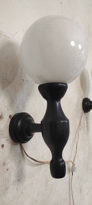 Coppia diappliques vintage POP ART in legno laccato blu/nero e sfere di opalina bianca. Installazione elettrica verificata e funzionante perfettamente. Portalampada E14. Dimensioni: 32 (lunghezza) x 13 (larghezza) x 17 (profondità). Sfera Ø 13 cm. Consulta le foto per la descrizione dell'articolo. Spedizioni escluse tramite GLS. Scopri altri articoli nel mio profilo. Decorazione, illuminazione, flexo,applique, pied, bronzo, alluminio, age space, art deco, metalarte, retro, vintage, ottone, lampada, opalina, fase, tulipano, art nouveau, vintage, retro, sputnik, modernista, fase, lupela, foscarini, schermo.