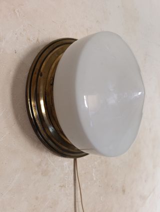 Applique o plafone in stile modernista realizzato in ottone e elegante tulipano in opalino bianco. Installazione elettrica rinnovata con attacco E27. Dimensioni: - Totale: 14 x 24 Ø cm. - Tulipano: 10 x 20 Ø x 15 (bocca). Guarda le foto per la descrizione dell'articolo. Spedizioni disponibili. Vedi altri articoli nel mio profilo. Decorazione, illuminazione, applique, base, bronzo, alluminio, art deco, metalarte, retrò, vintage, ottone, lampada, opalino, fase, tulipano, art nouveau, vintage, retrò, sputnik, modernista, fase, lupela, foscarini, mazzega, metalarte, accessori.