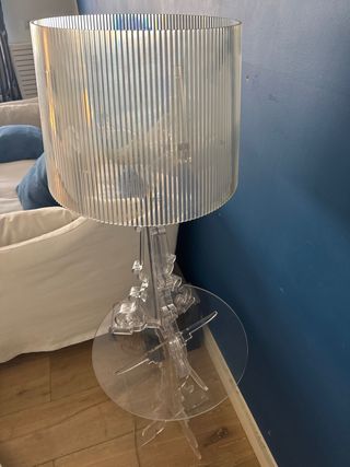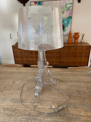 Lampada da tavolo elegante del marchio riconosciuto Kartell. Il suo design moderno e materiali di alta qualità la rendono un pezzo decorativo unico. - Design contemporaneo. - Finitura trasparente. COME APPARE NELLE FOTO, I RIVETTI SONO STATI STACCATI. PREZZO PER DUE.