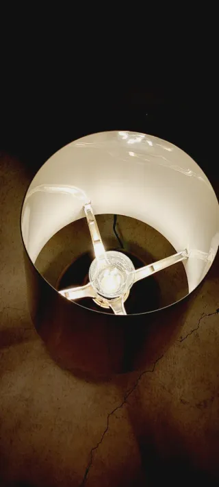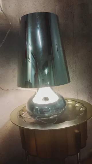 Elegante lampada da tavolo del famoso marchio italiano Kartell, modello Cindy. Il suo design moderno e la finitura lucida lo rendono un elemento decorativo. - Finitura metallica riflettente. - Base sferica e schermo conico. - Realizzato con materiali di alta qualità. Disponibile in 2 unità, il prezzo indicato è un solo pezzo Funziona perfettamente