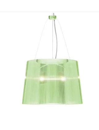 Lampada a sospensione autentica di design Kartell modello Ge. Design moderno e originale. Ideale per la decorazione di negozi o case (per interni). Il prezzo di una nuova è tra 250-280 euro. - Colore verde traslucido. - Realizzata in plastica. - Altezza regolabile. - 37 cm di diametro e 26 cm di altezza.