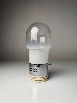 Lampada da tavolo di Carlo Nason per Mazzega, anni '70 Italia. Materiali: metallo cromato e vetro. Dimensioni: Altezza: 32 cm - Larghezza: 14 cm. Questo prodotto è un articolo vintage originale, quindi presenta segni di usura dovuti all'uso. Lampada retrò, lampada vintage, lampada mid century, lampada industriale, retrò, vintage, industriale, mid century, mobile vintage, applique, lampara fase, lampara metalarte, tramo, lampara flos, staff, estiluz, artemide, guzzini, lupela, gei, space age, eyeball, codialpo, joe colombo, lampara italiana, fase, tramo, lampara, kartell, space age, mobile vintage, estiluz, artemide, stilnovo, Isao Hosoe, Emma Gismon