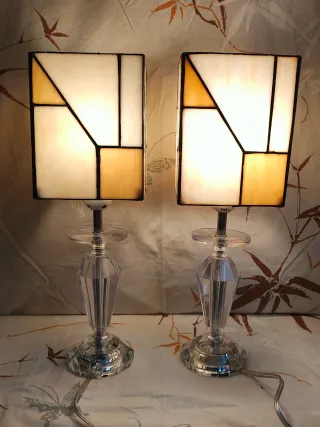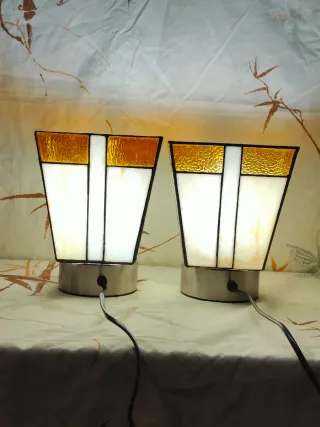 Elegante coppia di abat-jour in, perfette per aggiungere un tocco di classe a qualsiasi ambiente. Lampada da tavolo Lampada da comodino - Design geometrico moderno. - Vetro colorato e finiture di qualità. - Dimensioni: circa 39 x 13 x 13 cm. - Utilizza lampadina E27. La lampadina non è in vendita.