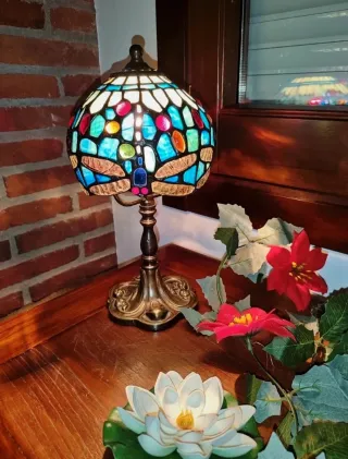 Lampada nuova, mai usata, a forma di farfalla in stile Tiffany per illuminare un angolo o un luogo e dare un tocco magico e rilassante con i suoi cristalli colorati. Questa lampada decora da sola, ma quando si preme l'interruttore... wow! Si crea la magia. Include interruttore come si vede nelle foto. La base imita dei fiori/rose che conferiscono anche uno stile romantico. Inoltre, soprattutto... vi regalo la lampadina LED! Sì, sì... quella piccola lampadina che si integra perfettamente e non si vede e che inoltre illumina molto (da 9w e luce calda). Cogli l'opportunità di utilizzare una splendida lampada farfalla in stile Tiffany!