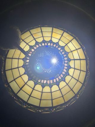 Lampada a soffitto elegante con un design ispirato allo stile Tiffany. Aggiunge un tocco di calore e distinzione a qualsiasi ambiente.