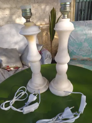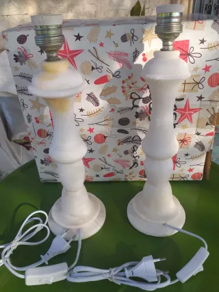 Lampade da tavolo eleganti in stile vintage, realizzate in marmo e alabastro. Design classico e senza tempo. Base larga per una maggiore stabilità. Portalampada metallico.