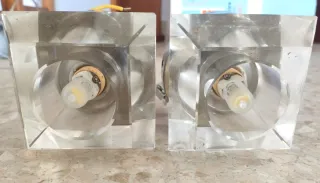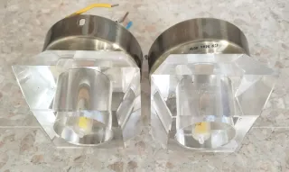 Coppia di lampade da parete con un design unico a forma di diamante. Aggiungono un tocco elegante a qualsiasi spazio. Struttura in cristallo e plastica. Design geometrico. Lampadina inclusa.
