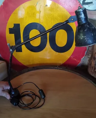 Lampada in stile industriale con un design robusto e funzionale. Ideale per spazi di lavoro o decorazione. - Struttura principale in metallo. - Braccio snodabile per regolare la posizione. - Paralume conico. - Cavo con interruttore.