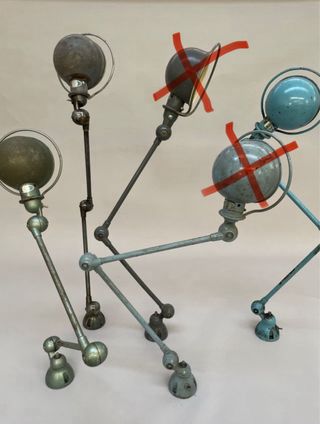 Lampada Jieldé in stile industriale vintage. Sono lampade articolate, perfette per officine o spazi con stile industriale. Presentano un design robusto ed elegante. Hanno una finitura usurata che conferisce loro un fascino unico. Il prezzo è per unità. 3 unità disponibili. Tutte funzionano correttamente.