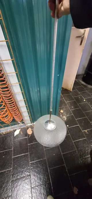 Lampada a sospensione dal design vintage con un aspetto accattivante. Molto originale. - Forma sferica. - Finitura brillante. - Tutto il cablaggio è nuovo. Dimensioni paralume: Diametro: 38 cm e altezza: 28 cm. Quando è accesa, il colore sembra più arancione che rosso. È bellissima. È in buone condizioni con segni evidenti dovuti al passare del tempo. Pesa molto poco.