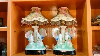 Lampade Vintage Palomas in Porcellana 📲 640513971. Disponibili 2 unità. Entrambe a 50€ - Con un delizioso design di colombe in porcellana. Base in porcellana con figure di colombe. Schermi in tessuto con stampa floreale. Decorazioni a ciondolo di perline. Stile decorativo vintage. MISURE: Diametro max 26cm, Altezza 45cm. Altri articoli nel mio profilo. Abbiamo un negozio fisico. Visitateci in Calle de la Imagen 26, ENTREVÍAS, CAP 28018. SECONDA MANO E RASTRO TINA. Orario: 9-14 e 16-20:30 dal lunedì al sabato. Sabato pomeriggio 16-19:30.