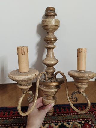 Applique vintage 2 luci legno e metallo