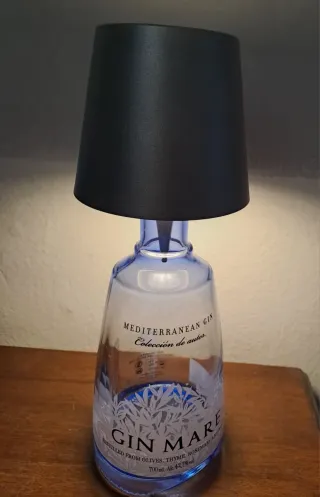 Lampada decorativa realizzata con una bottiglia di Gin Mare, dai bellissimi colori e disegni che richiamano il fascino del mare. Lampada ricaricabile con cavetto UBS ( compreso) Si accende con un semplice tocco e ha 3 diverse luminosità: luce fredda, calda e luce intensa.