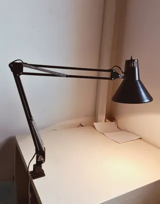 Lampada da tavolo o da scrivania Twist T-1 T-2 T-4, di colore nero opaco, di produzione tra anni 70 e 80. Con morsetto, braccio regolabile estensibile, funzionante e in condizioni praticamente perfette. Cavetteria originale. Attacco lampadina E27 (non compresa) Altezza massima circa 80 cm Diametro paralume 17 cm #Modernariato #Vintage Anni 70 Anni 80 #70s #80s Flexo Flessibile Pantografo Da ufficio Comodino Industriale Snodabile Collo di cigno Architetto Targetti