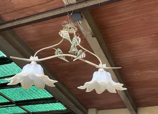Elegante sospensione a 3 luci con un design ispirato alla natura, perfetta per aggiungere un tocco di stile. - Struttura in ferro verniciato. - Dettagli floreali e foglie. - Vetri in vetro soffiato bianco opale/ambra. Il lampadario si adatta benissimo in ambienti rustici/casolari, ideale come sopra tavolo. MISURE: Larghezza 88 cm Altezza 55 cm (senza catena) Lampadine: 2 E27 Prezzo 100€ (prezzo originale 290€) Nuovo da mostra. Possibili ritiro a Bologna, zona Saragozza