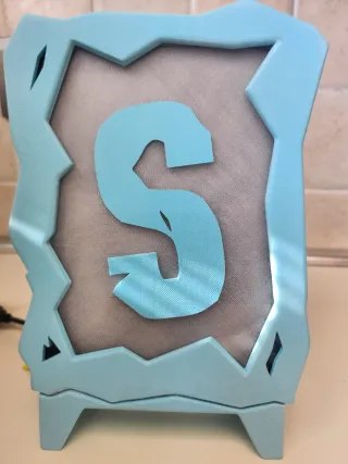 Lampada da tavolo a forma di lettera S, con un design moderno e accattivante. - Cornice esterna azzurra. - Dettagli interni a contrasto. - accensione con cavo usb