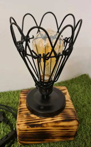 Bellissima lampada artigianale stile industrial con base il legno del pallett portalampada con base e gabbia in metallo compresa lampadina stile vintage grande