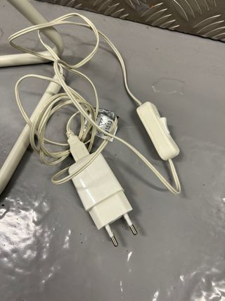COME NUOVE- 2 lampade da tavolo Ikea modello HARTE bianco, testa regolabile delle lampade che si possono orientare facilmente verso il basso e verso l'alto. Luci a LED integrati, pulsantini di accensione/spegnimento, spina USB×2, cavi originali con USB.