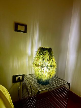 Lampada da comodino dal design unico e originale. - Realizzata in tessuto peloso. - Dettagli colorati che creano un effetto vivace.