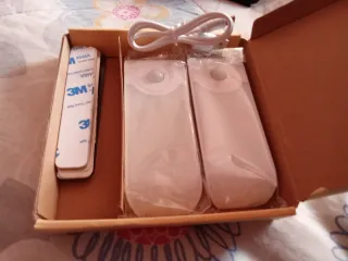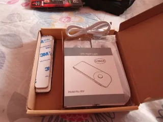 Set di due luci notturne a LED, ideali per illuminare con discrezione. - Include cavo di ricarica. - Dotate di adesivi per il fissaggio.