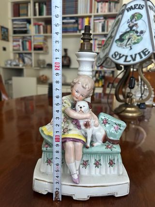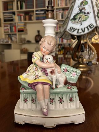 Lampada porcellana bambina con cane