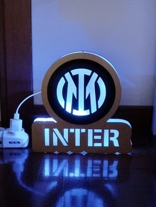 Lampada decorativa con il logo dell'Inter In legno fatta a mano Assolutamente nuova - Mai usata Larghezza 28 cm Lunghezza 29 cm Profondità 4 cm Possibilità di ritiro presso mio domcilio