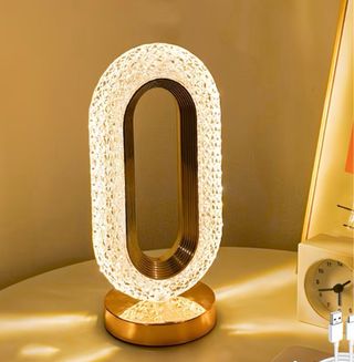 1 lussuosa lampada da tavolo ovale in cristallo, lampada USB ricaricabile per ufficio, luce notturna decorativa per soggiorno e camera da letto, ideale per decorazioni in camera, soggiorno, feste e cene, lampada creativa